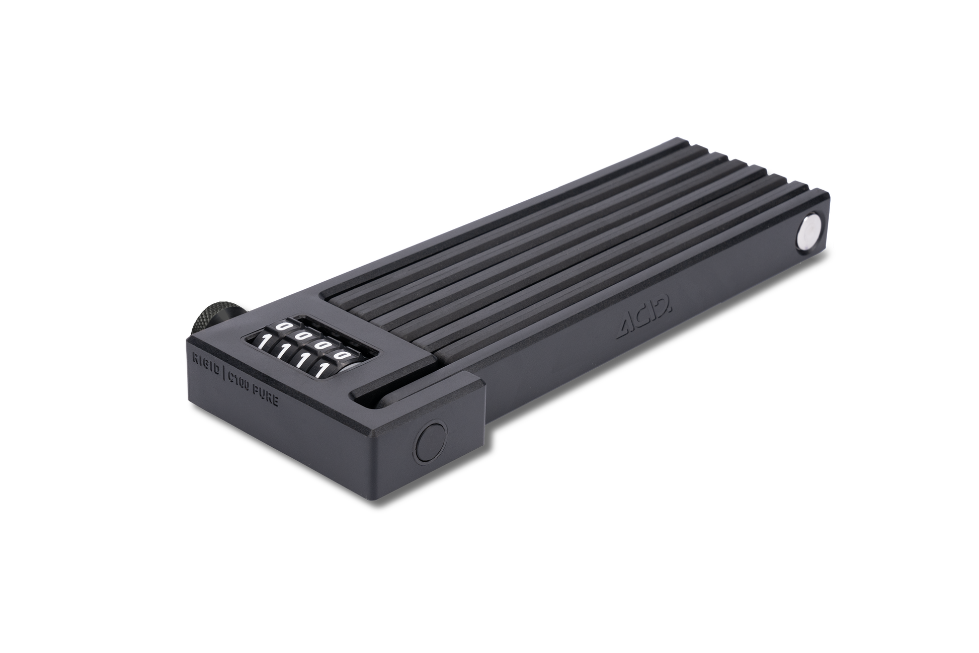 Praktisch für alle, die öfter mal Schlüssel verlieren: Das ACID Faltschloss RIGID PURE C120 ist ein Zahlenschloss mit vier einstellbaren Zahlenrädern und 120 cm Länge. Es ist aus rostfreiem Hochleistungsstahl gefertigt, abnutzungsresistent, mit Sägeschutz und speziell gehärtetem Verschlussbolzen. Die Kunststoffoberfläche schützt den Rahmen deines Fahrrads vor Kratzern. Das Schloss hält durch seine besonders hochwertigen Materialien und die präzise Verarbeitung Aufbruchsversuchen und extremer Witterung langfristig stand. Der flache Halter mit seitlicher Öffnung lässt sich mühelos variabel verschrauben oder mit rutschfesten Klettverschlüssen befestigen.