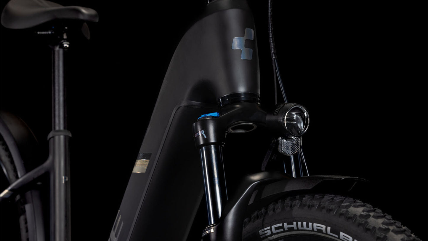 Das Nuride Hybrid Pro Allroad hält, was sein Name verspricht, weil es die Vielseitigkeit eines Mountainbikes, das unkomplizierte Handling eines City-Rads und die Anpassbarkeit eines Tourers kombiniert. Doch es kommt noch besser: Sein kraftvoller, geschmeidig und geräuscharm arbeitender Bosch CX Motor und starke PowerTube Akku machen jede Route und jeden Anstieg zum Spaziergang. Diese Power wohldosiert auf den Boden bringt die vom Lenker aus bedienbare Shimano Cues 10-fach Schaltung. Mit den leistungsstarken hydraulischen Scheibenbremsen von Shimano wird sicher und kontrolliert gebremst. Für extra Fahrkomfort auf holprigen Wegen haben wir uns für eine Suntour Luftfedergabel im Team mit breiten, griffigen Schwalbe Reifen entschieden. Last, but not least die Zubehör-Vollausstattung, bestehend aus Schutzblechen, Lichtanlage und Seitenständer. Damit steht dieses Bike allzeit für jede Tour bereit.