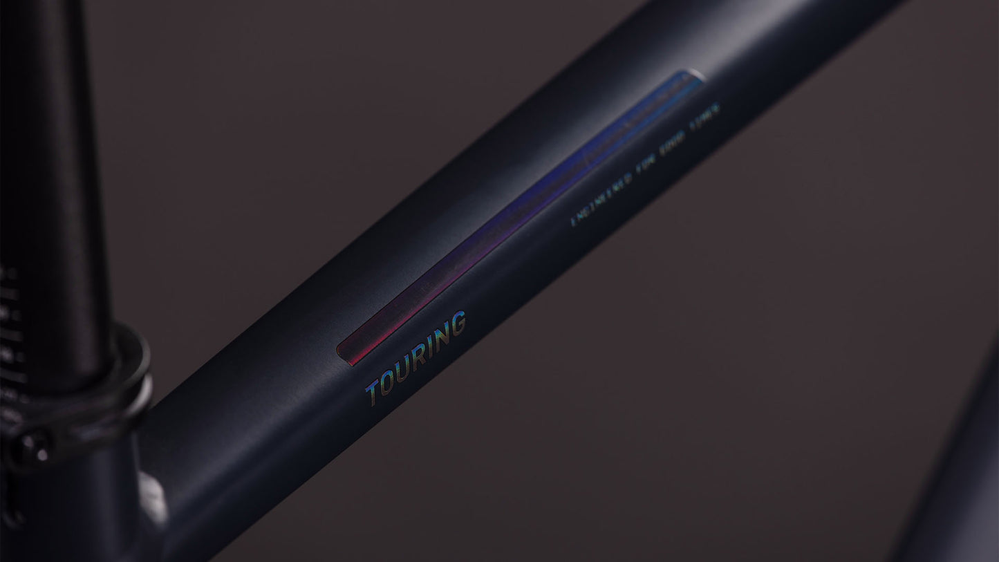 Horizonterweiterung gefällig? Mit dem voll ausgestatteten und superkomfortablen Touring ONE geht's überall geschmeidig dahin! Dabei hat die einfach zu bedienende 8-fach Essa Schaltung von Shimano per Klick stets den richtigen Gang im Angebot und macht damit alle Routen und Anstiege zum Spaziergang. Ebenfalls von Shimano kommen die leistungsstarken hydraulischen Scheibenbremsen, die das Bike selbst bei Nässe zuverlässig verzögern und zum Stehen bringen. On top gibt's eine Federgabel und 47 mm breite Reifen für sensationellen Fahrkomfort auf holprigen Strecken. Praktisch für alle, die sowohl in der City als auch über Land unterwegs sind: Schutzbleche, unser formschön integrierter Gepäckträger IC 2.0, eine dynamobetriebene Lichtanlage und der praktische Flat Mount Seitenständer. Das Herzstück eines Bikes ist zweifellos sein Rahmen – deshalb haben wir bei der Entwicklung des Touring auch wieder extra viel Sorgfalt walten lassen und Wert auf hohen Fahrkomfort und unkompliziertes Handling gelegt. So macht unsere Efficient Comfort Geometry ihrem Namen alle Ehre: Sie fährt sich zuverlässig, intuitiv und selbst auf den längsten Ausfahrten dauerhaft komfortabel. Es gibt zudem ganze fünf Diamantrahmen-Größen zur Auswahl – so finden alle das für sich und ihre Anforderungen passende Set-up. Bei allen Varianten inkludiert sind unser formschöner, stabiler semi-integrierter Gepäckträger 2.0, der Flat Mount Seitenständer und sauber ins Unterrohr verlegte Züge, was die cleane, aufgeräumte Optik der doppelt konifizierten Aluminiumrohrsätze unterstreicht.