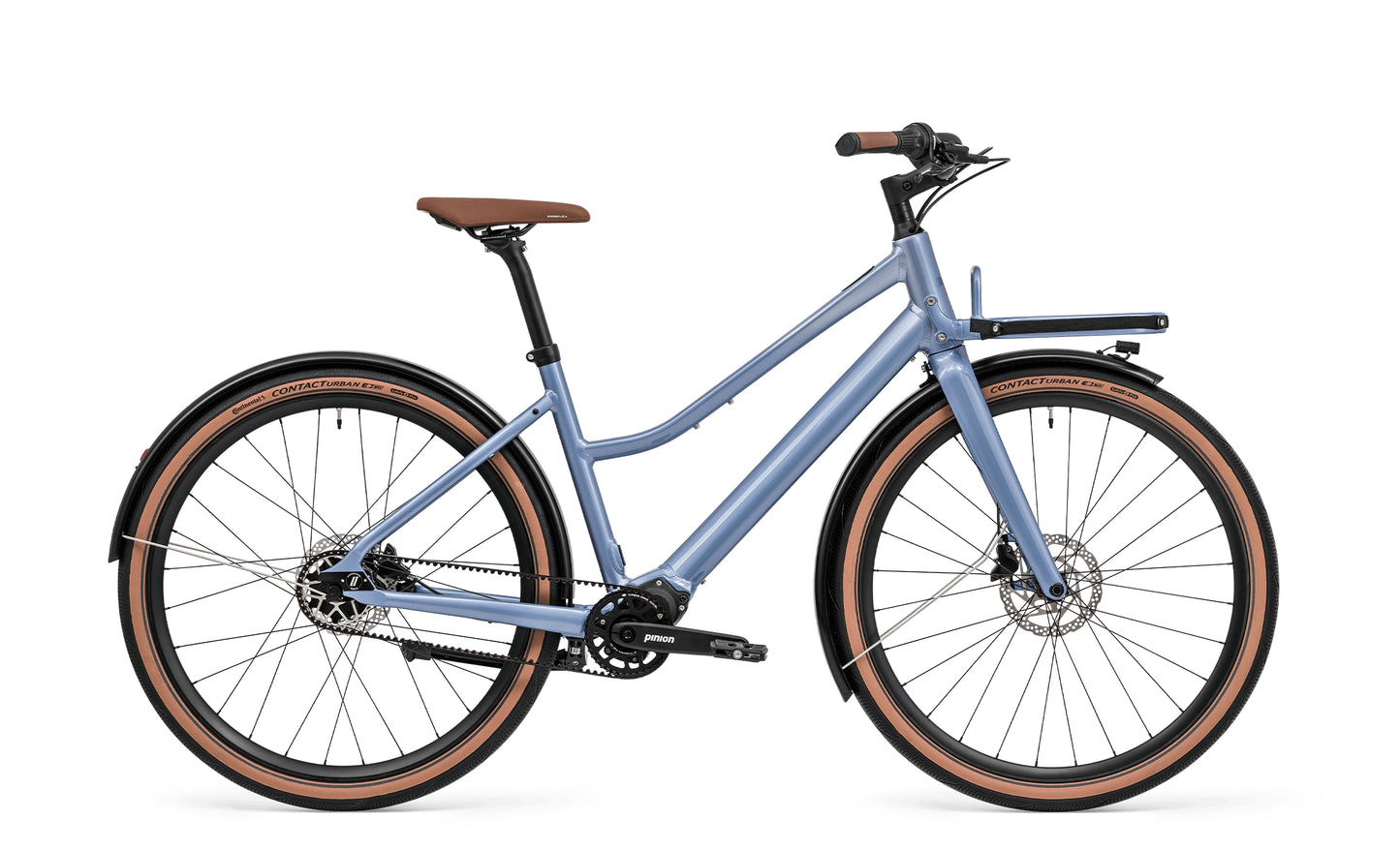 | Rahmen | Aluminium (AL6061-T6), Aero-Shape-Rohrsatz, 3-fach konifiziert, geschmiedete PINION-Brücke, geschmiedetes Ausfallende mit Schlittenspannsystem und Schindelhauer – Belt Port, Anschraubpunkte für rahmenfesten Gepäckträger, geglättete Schweißnähte, interne |