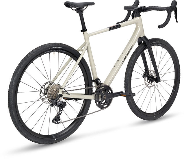 … auf Asphalt, Schotter oder im Wald. Das Gavere Com überzeugt mit leichtem, elegantem Aluminiumrahmen in Dusty Violet oder Cloudy Beige und einer lenksteifen Vollcarbongabel, die für Laufruhe und Komfort sorgt. Bis zu 50 mm breite Reifen, der robuste DT Swiss Aluminium-Laufradsatz und die Schwalbe G-One R Performance 700 x 45C bieten optimalen Grip und Fahrkomfort. Die präzise Shimano GRX 820/610 2x12-Schaltung sorgt für geschmeidige Gangwechsel, während zahlreiche Gewindeösen vielseitige Bikepacking-Möglichkeiten eröffnen.