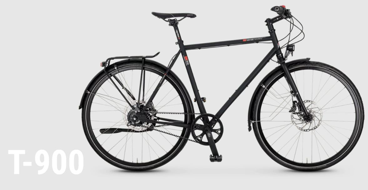 Wer sein Fahrrad tagtäglich bei Wind und Wetter nutzt, wird die Zuverlässigkeit des T-900 auch nach vielen Jahren noch zu schätzen wissen. So wurde die Ausstattung des T-900 auf ein langes Fahrradleben hin abgestimmt: hydraulische Scheibenbremse Shimano XT, Lichtanlage von Busch & Müller mit 70 Lux-Scheinwerfer, Vorbau und Lenker von Levelnine, Schwalbe Marathon Supreme Bereifung u.v.m.